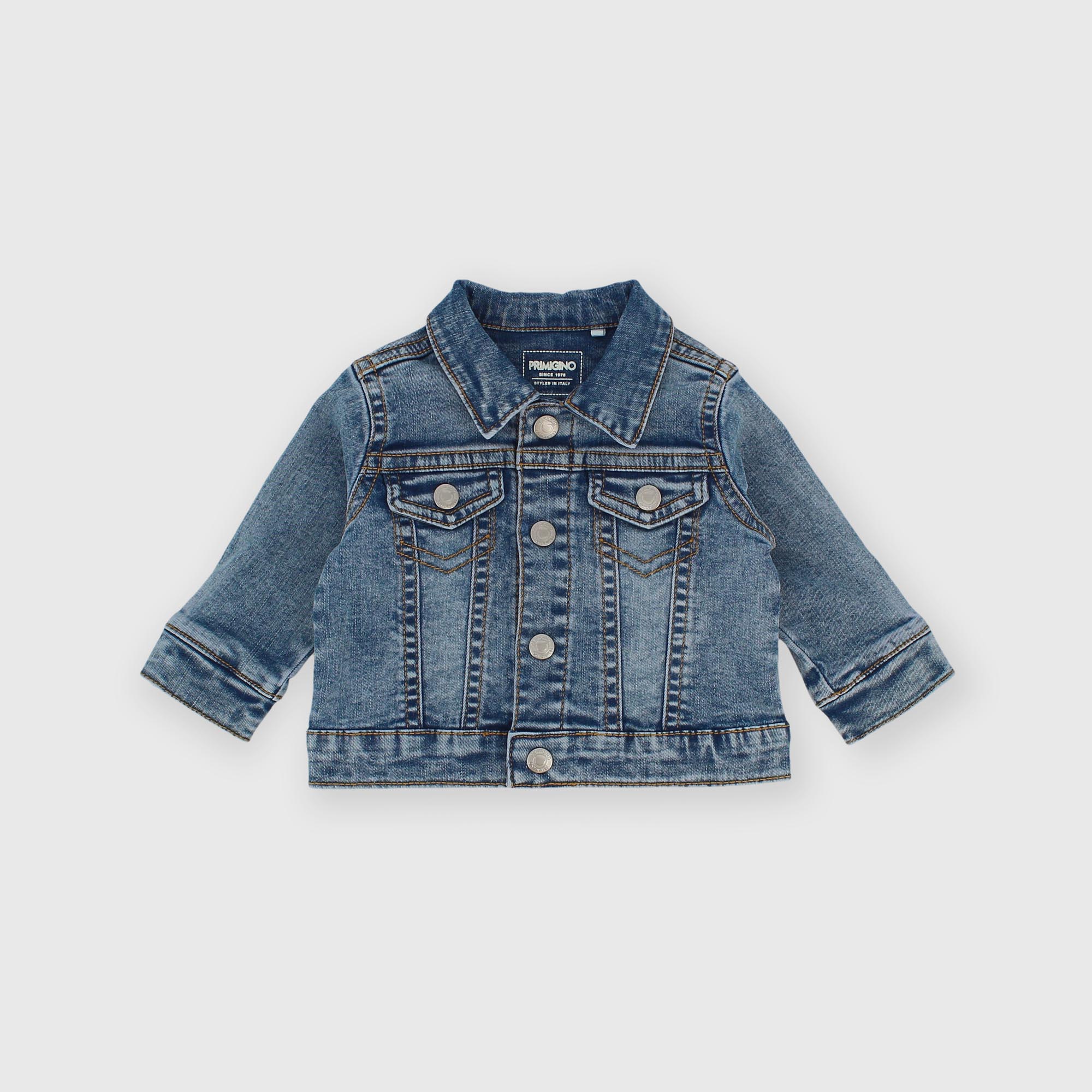 - Džínová bunda s límečkem a dlouhým rukávem. Přední zapínání na kovové patentky. Falešné přední kapsy s knoflíky.