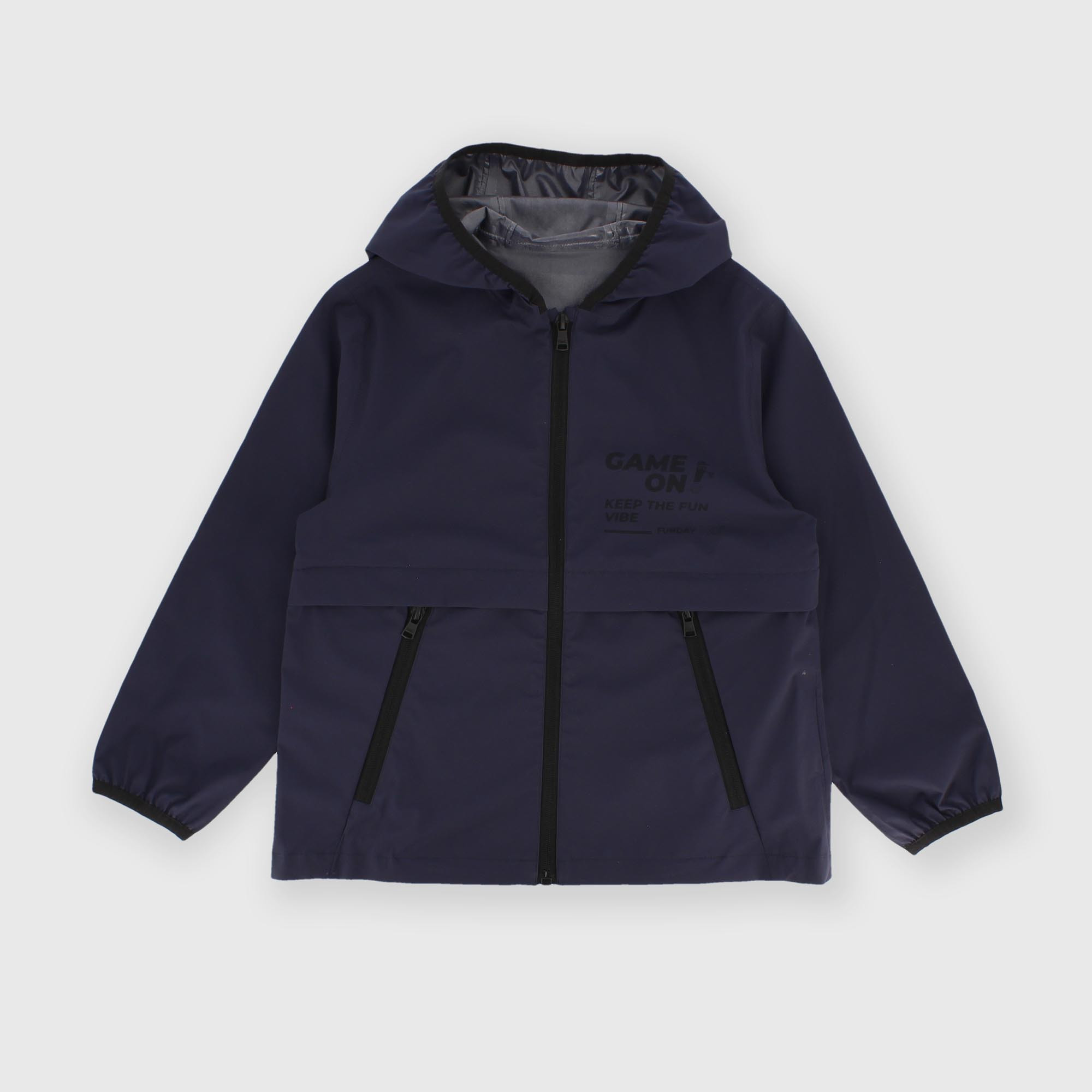 - Nylonová bunda s dlouhým rukávem a kapucí. Zapínání na zip vpředu. Přední kapsy na zip. Drobný potisk. Kontrastní detaily.