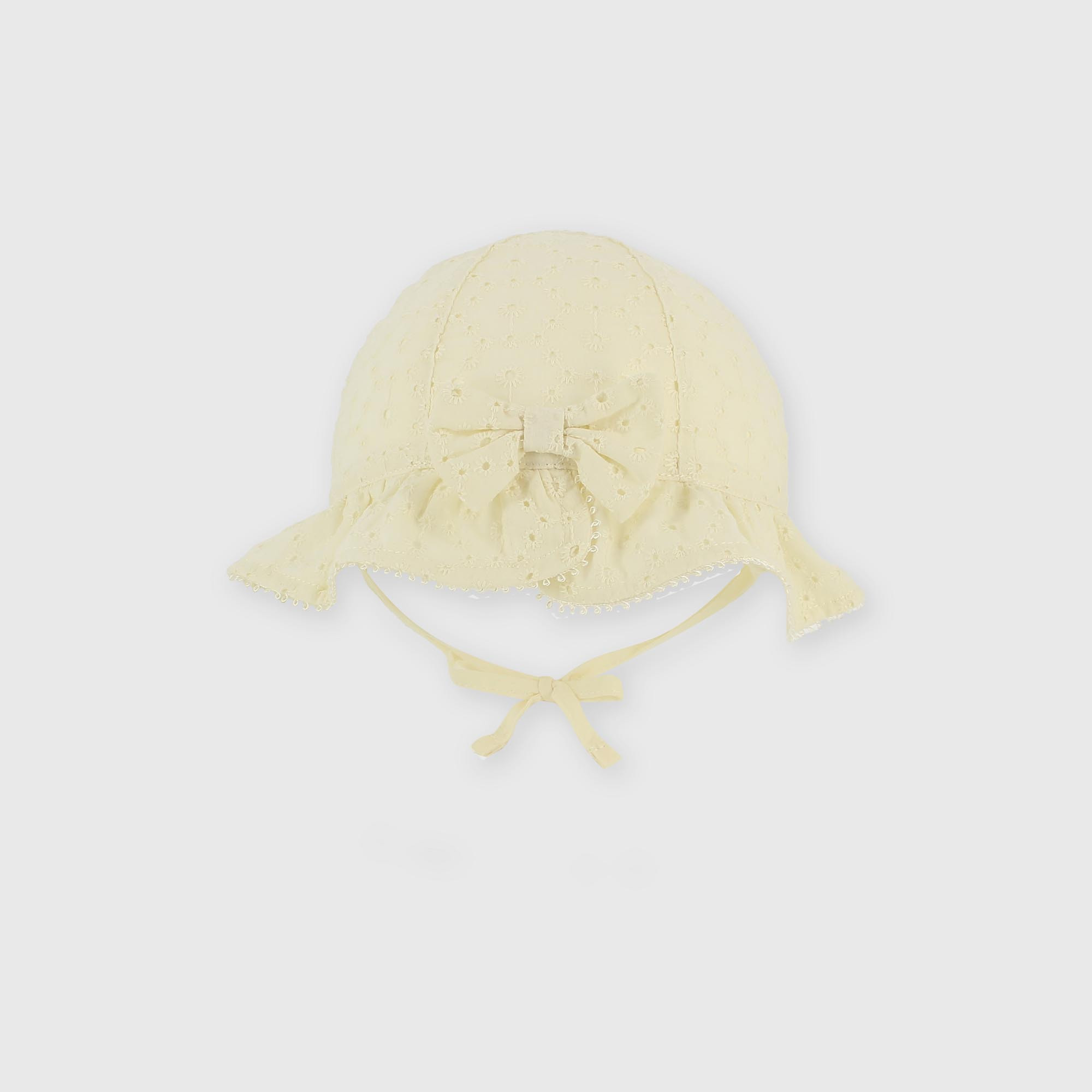 - Krajkový klobouk s mašlí. Zapínání na vázání.