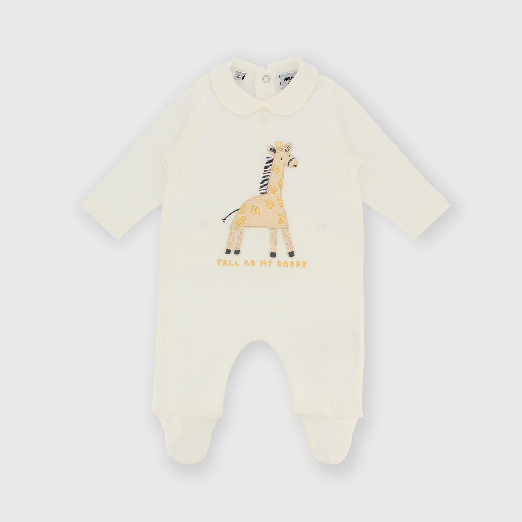 - Dupačky s límcem a dlouhým rukávem. Zapínání na patentky vzadu. Aplikace žirafy vpředu.