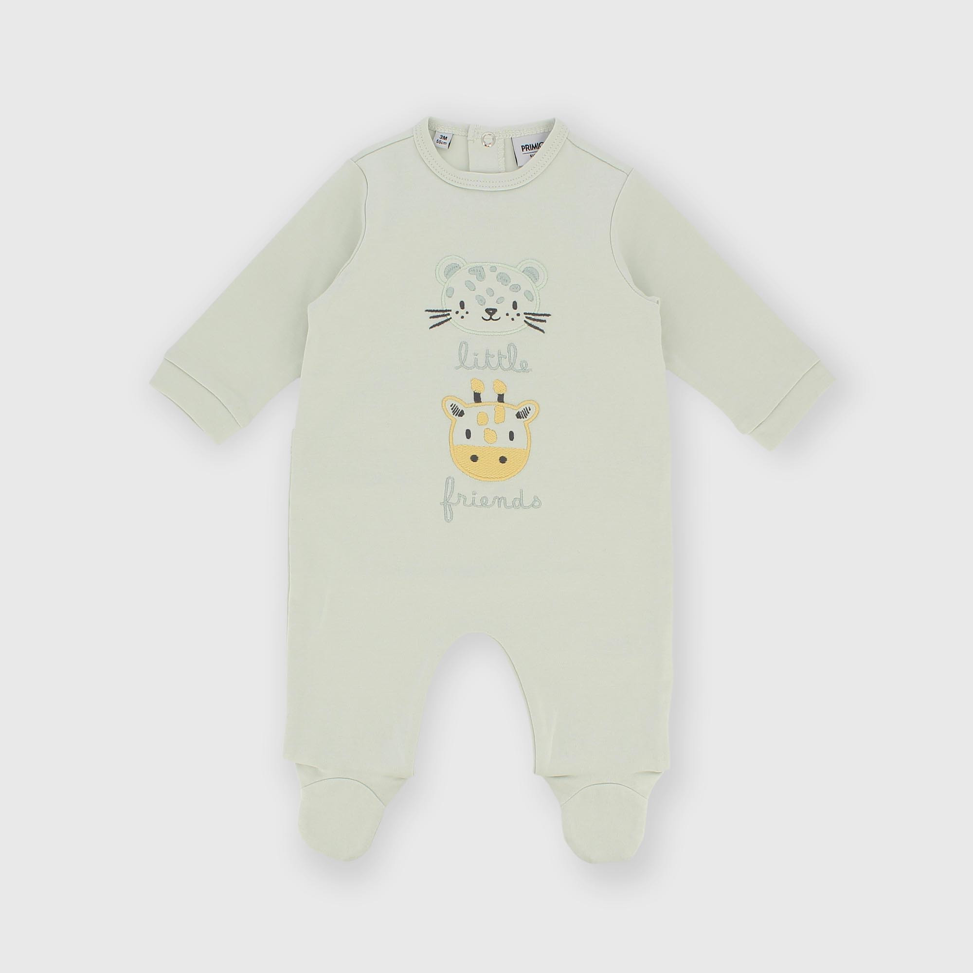- Dupačky s dlouhým rukávem. Zapínání na patentky vzadu. Vyšívané zvířecí aplikace vpředu.
