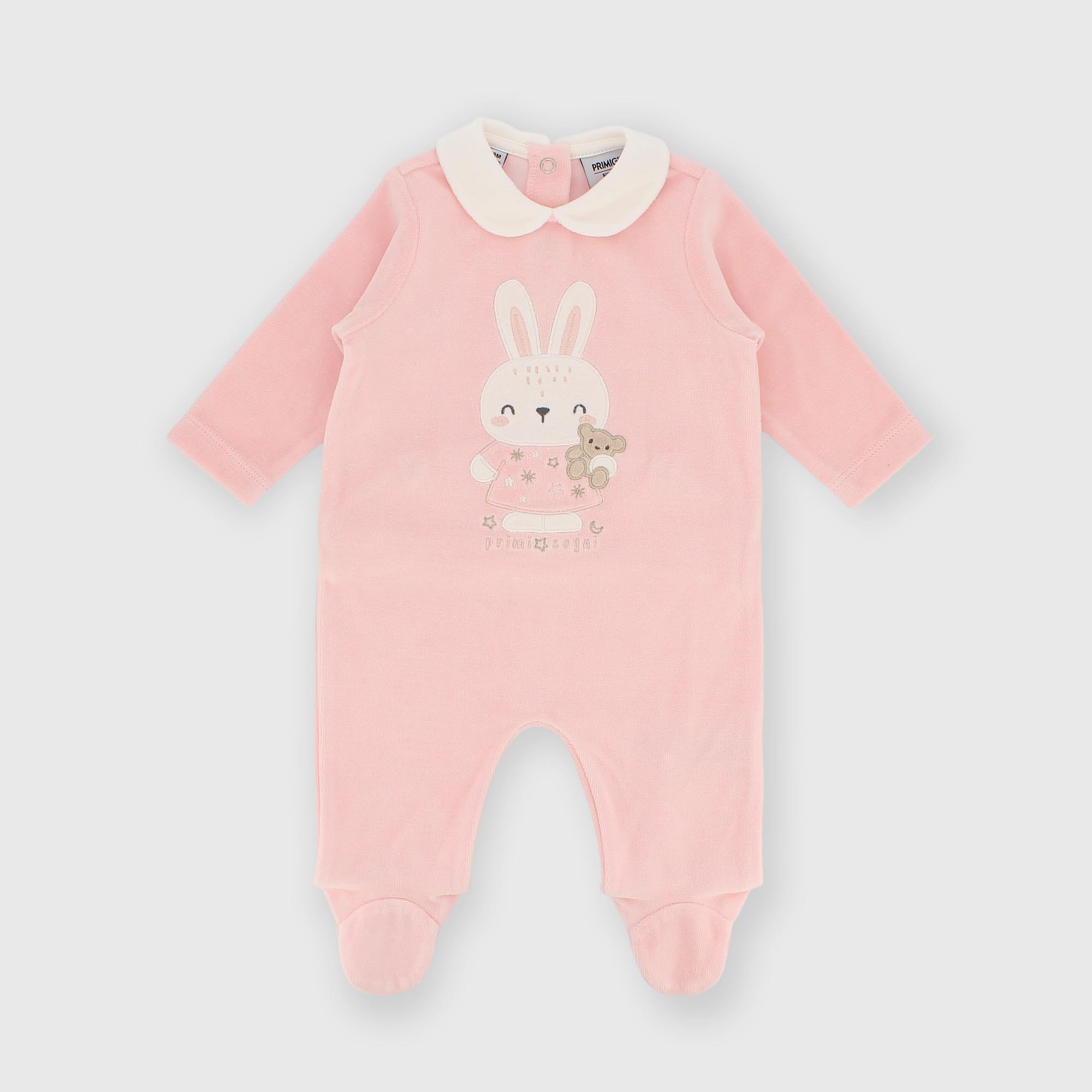 - Žinylkové dupačky s límcem a dlouhým rukávem. Zapínání na patentky vzadu. Výšivka králíka vpředu.