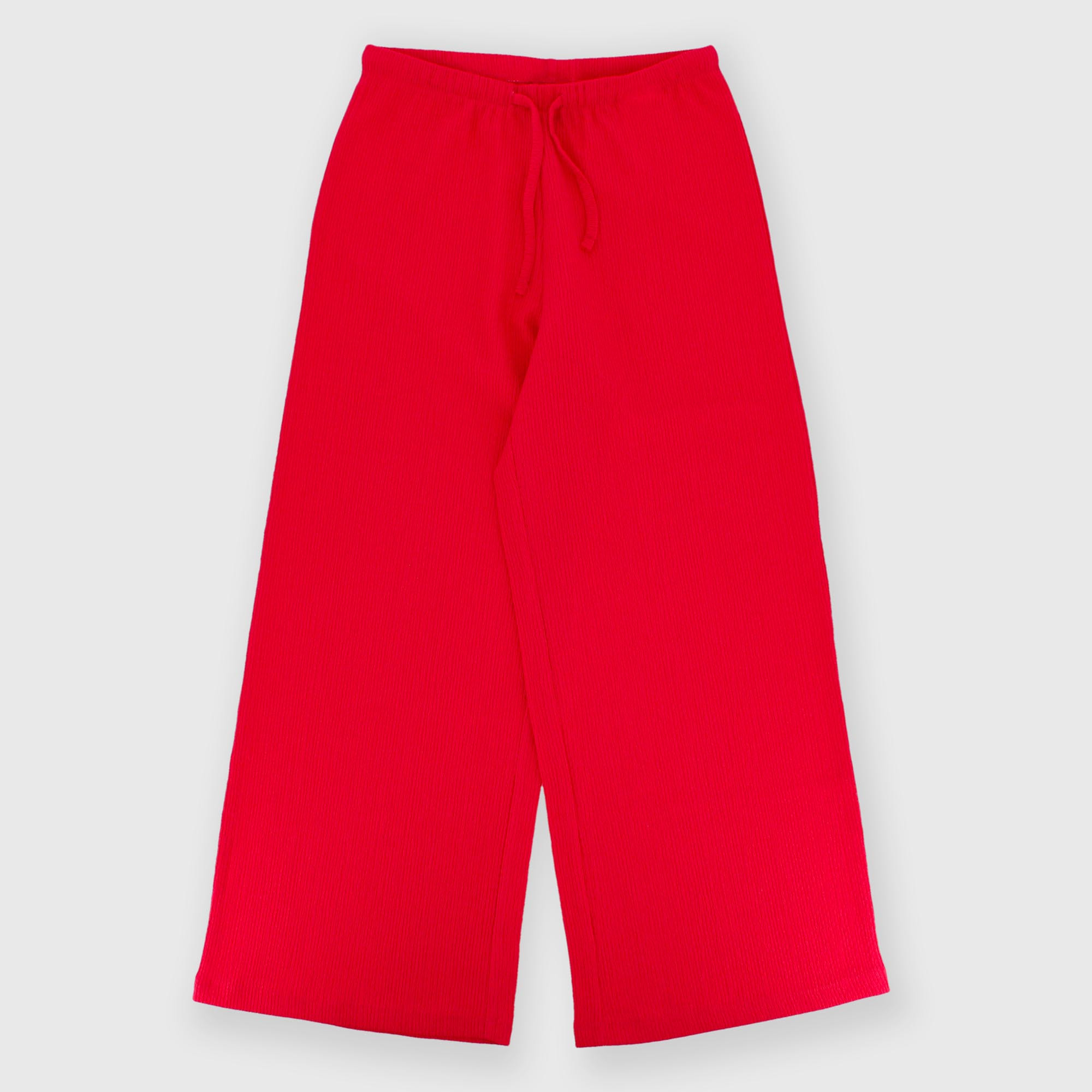 - Široké kalhoty seersucker s elastickým pasem a předními tkaničkami.