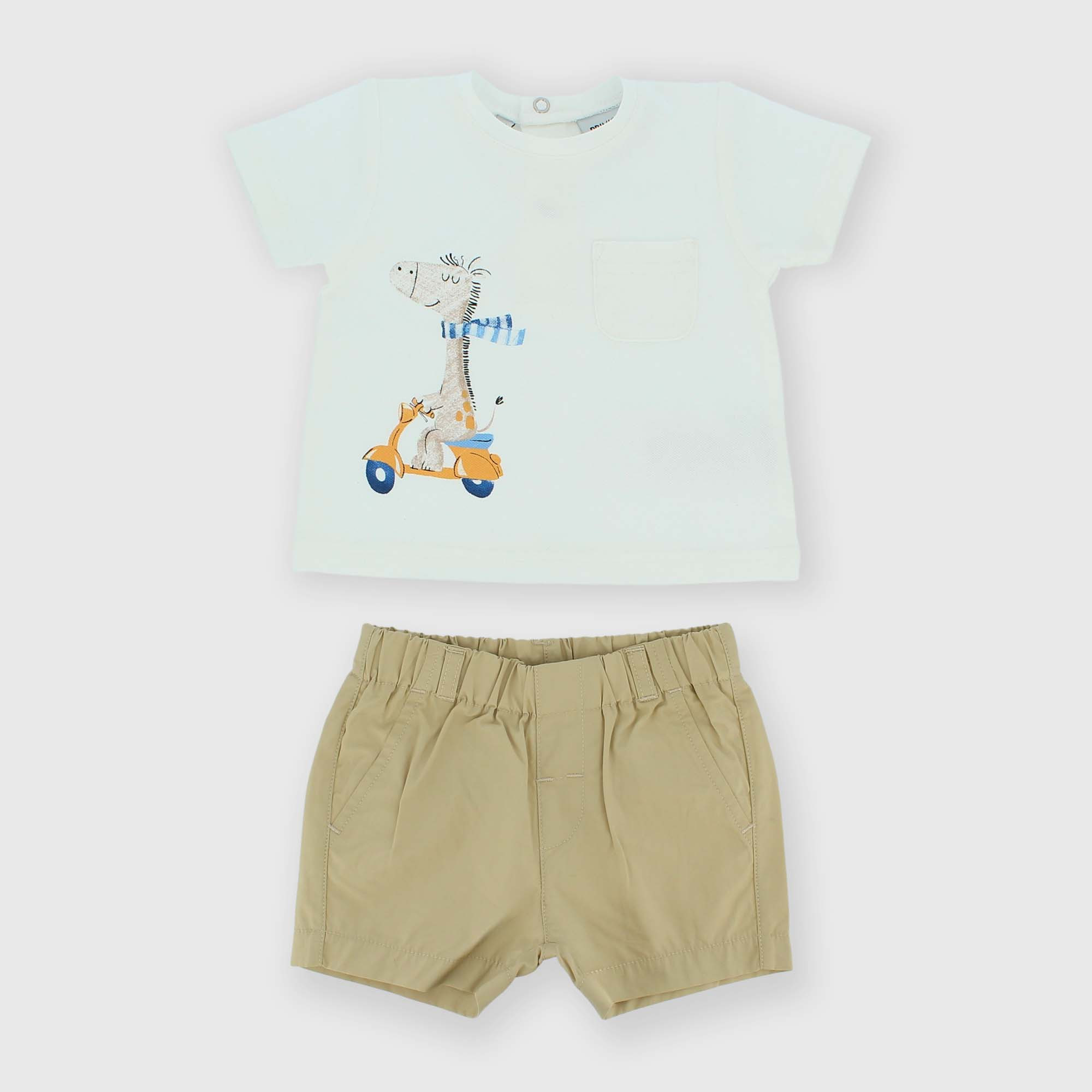 - Dvoudílný komplet. Tričko s krátkým rukávem. Zapínání na patentky vzadu. Potisk na přední straně a náprsní kapsa. Kraťasy s elastickým pasem. Přední rozparky a zadní lemované kapsy.