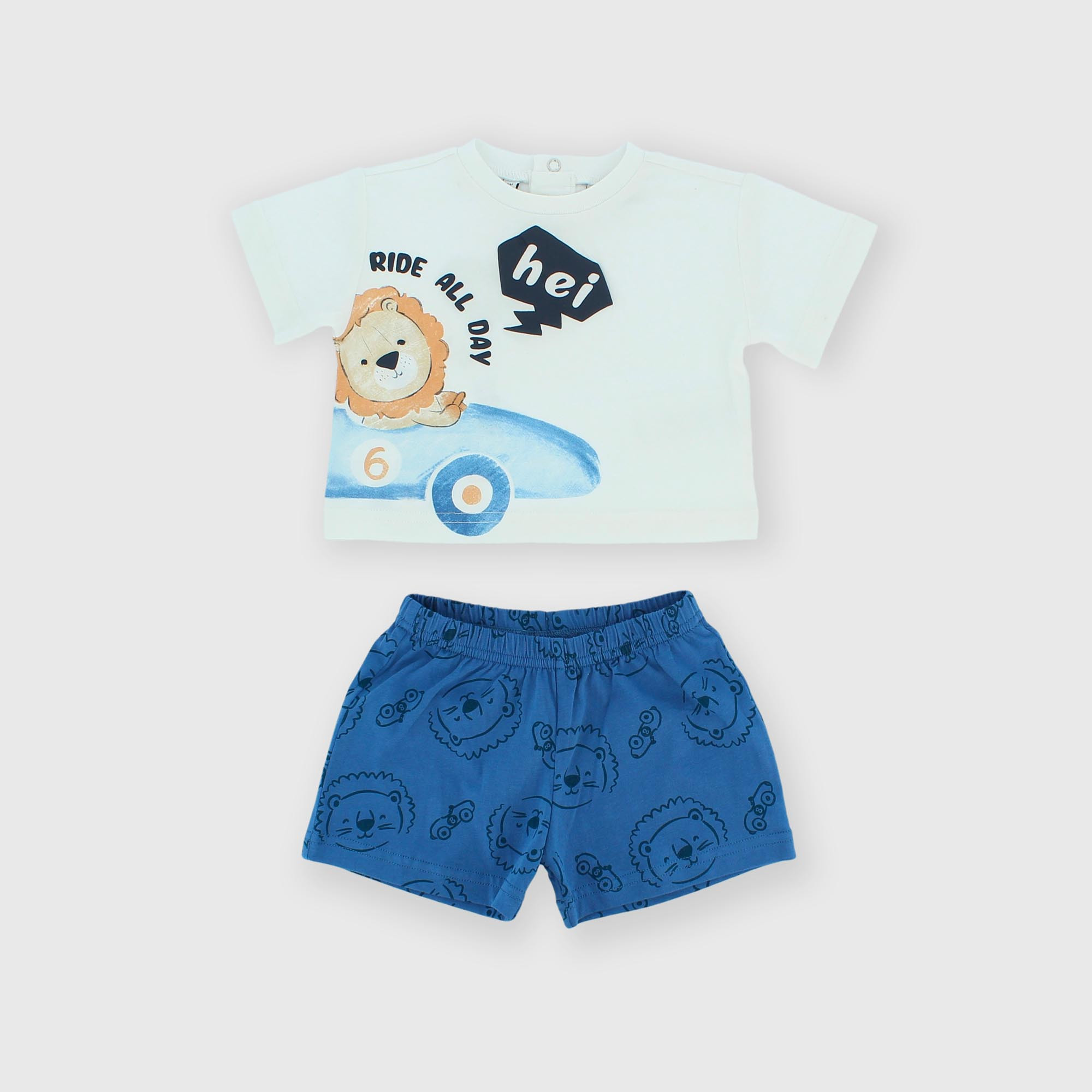 - Dvoudílná žerzejová souprava. Tričko s krátkým rukávem. Zapínání na patentky vzadu. Potisk s pogumovanými detaily vpředu. Kraťasy s elastickým pasem a celoplošným potiskem.