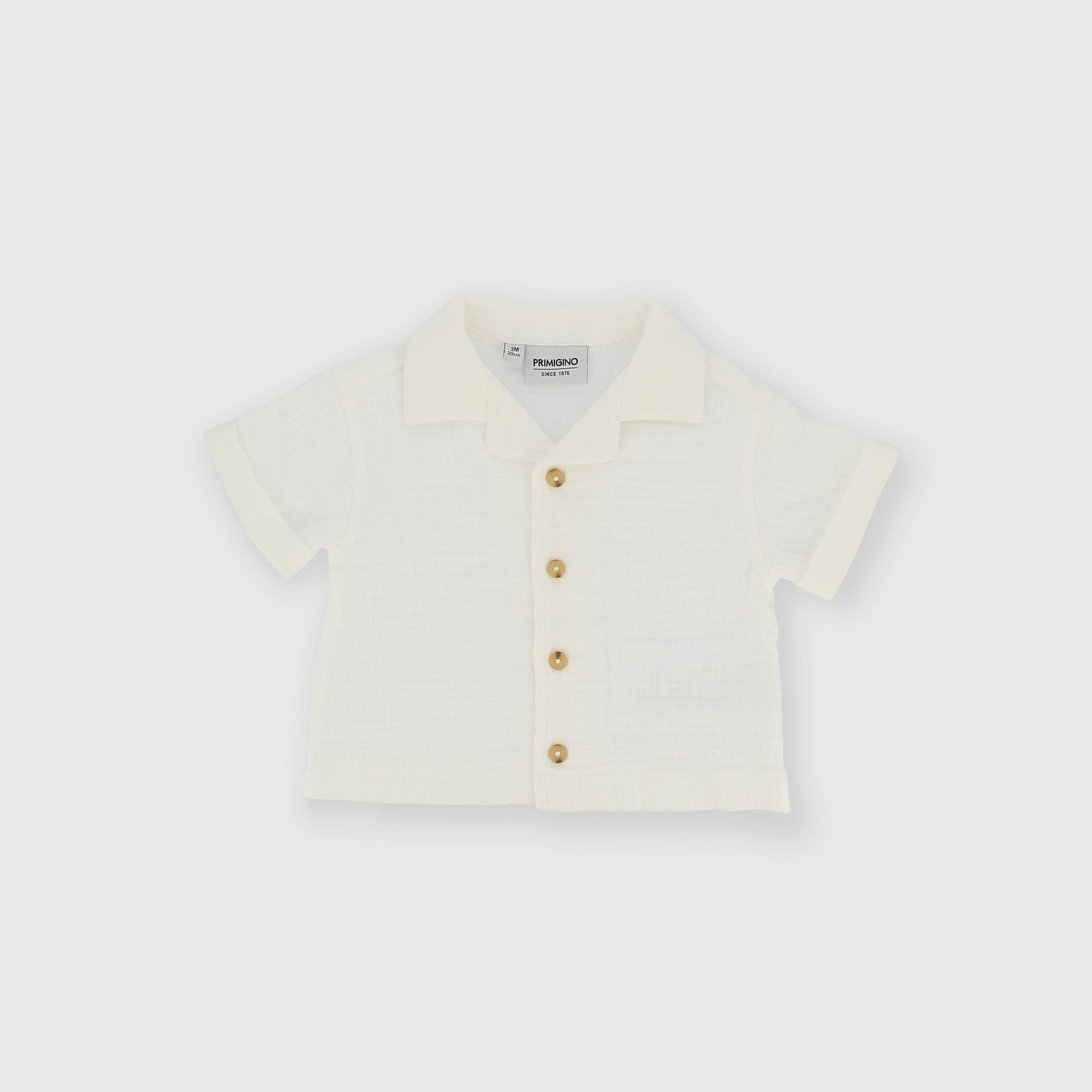 - Bavlněná gázová košile s krátkým rukávem a zapínáním na knoflíky vpředu.