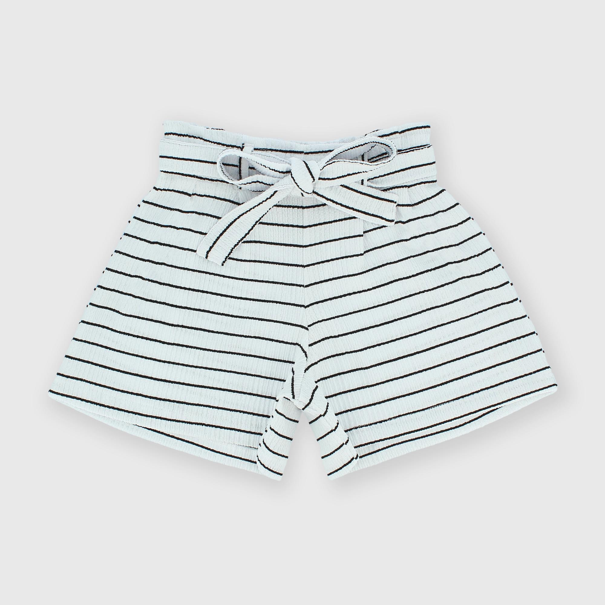 - Pruhované kraťasy s elastickým pasem. Pásek ve stejném stylu.