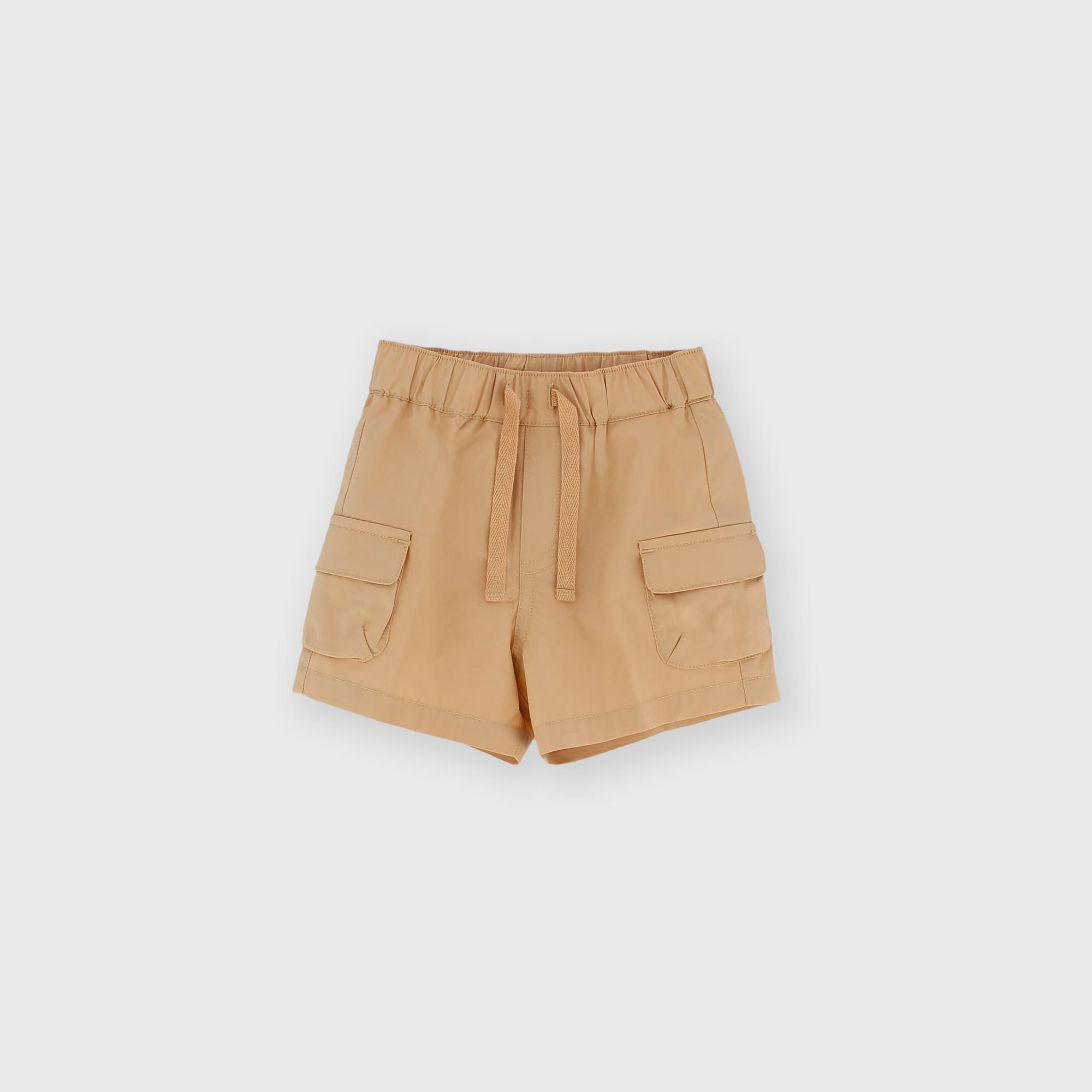 - Poplínové kraťasy s elastickým pasem a stahovacími šňůrkami vpředu. Po stranách jsou klopové nakládané kapsy.