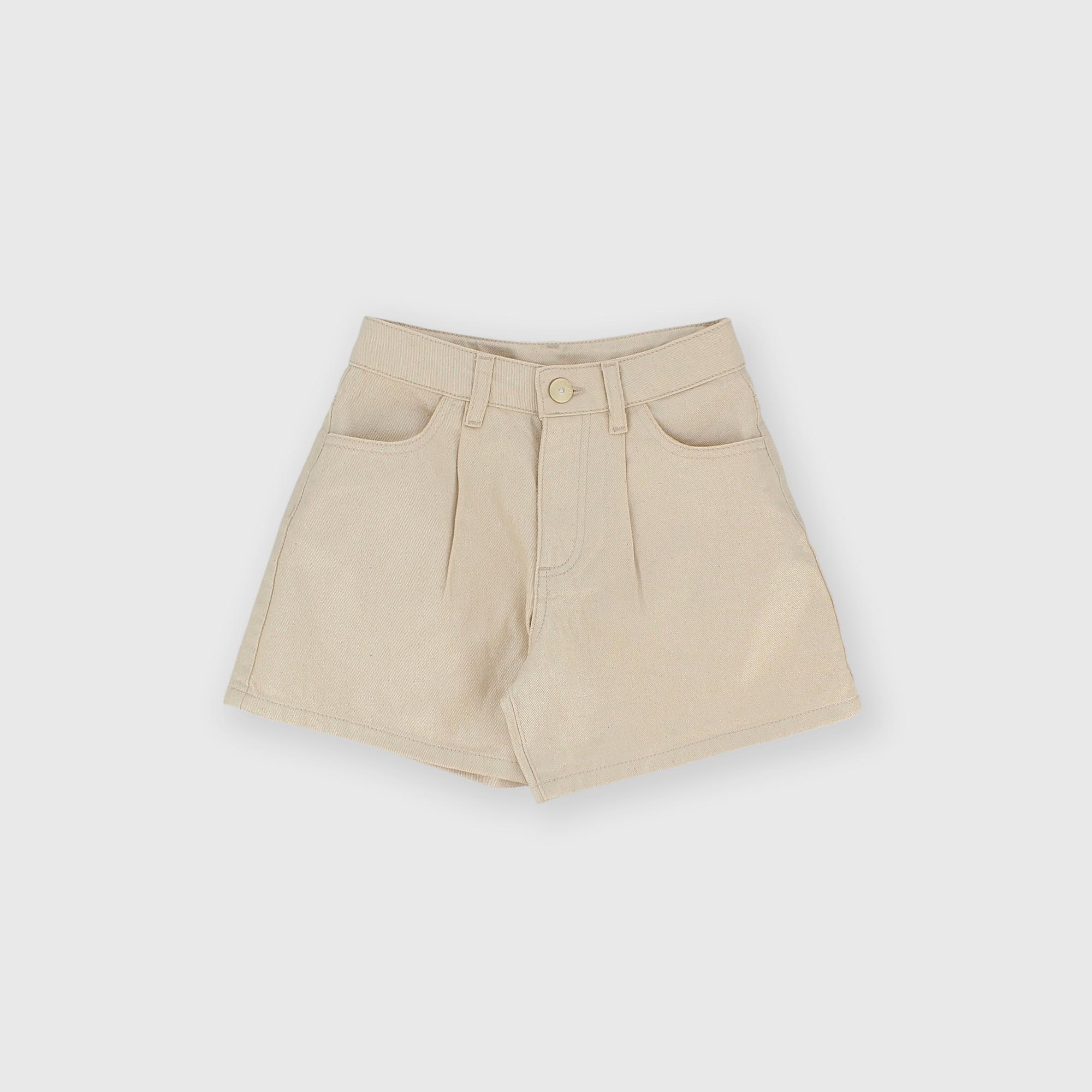- Bavlněné kraťasy s lurexovým potahem a nastavitelným pasem. Přední kapsy a zadní nakládané kapsy. Přední záševky.