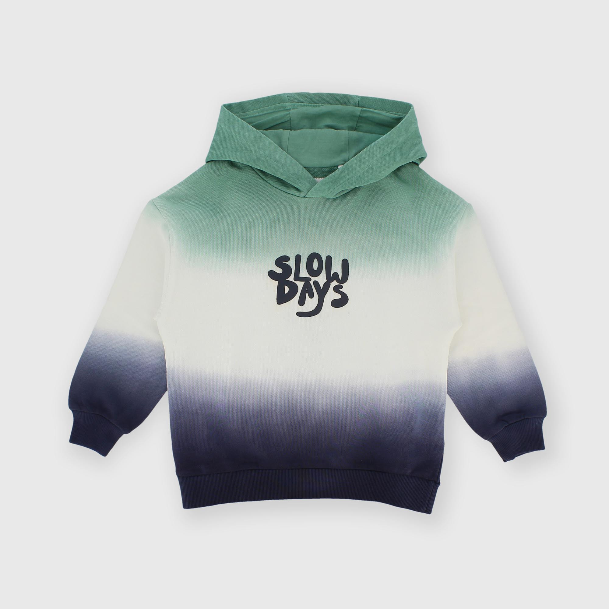 - Mikina s dlouhým rukávem, vybledlá. Potisk na přední straně. Žebrované manžety a lem.