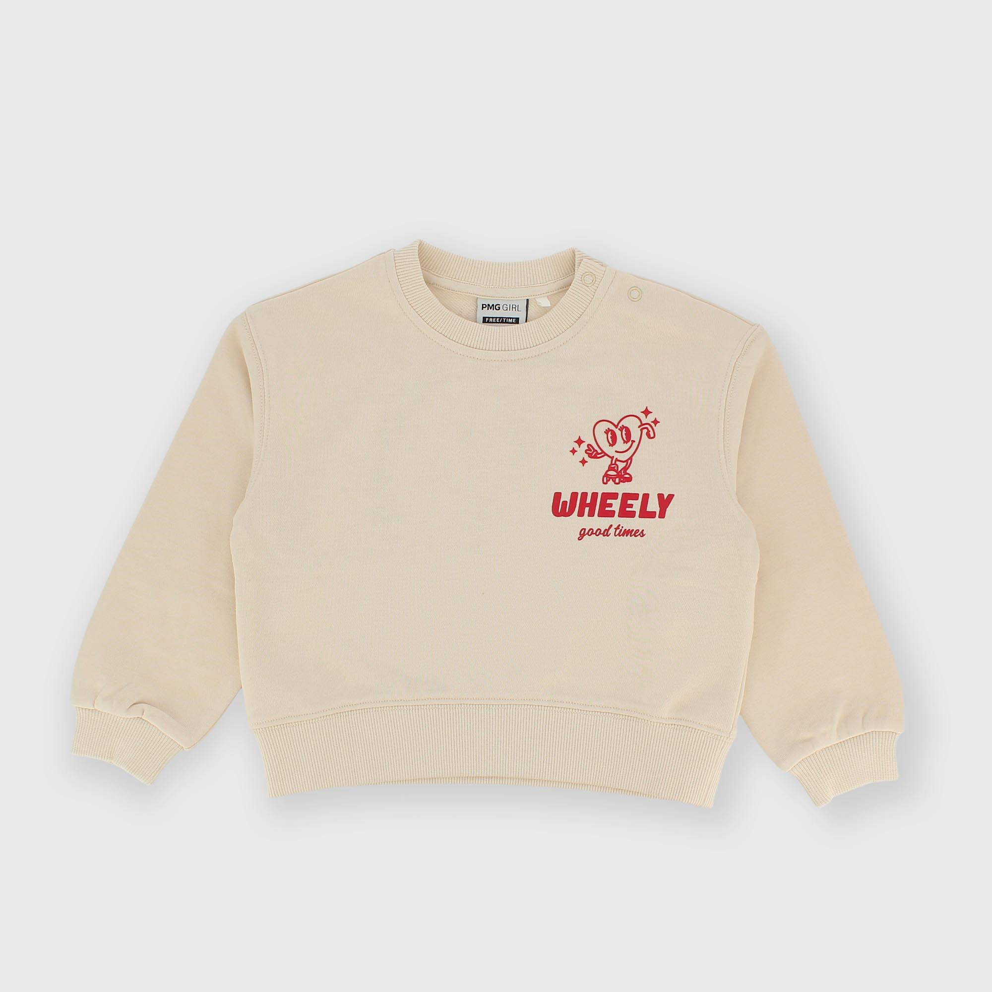 - Mikina s kulatým výstřihem a dlouhým rukávem. Zapínání na patentky na rameni. Potisk na přední a zadní straně. Žebrovaný límec, manžety a lem.