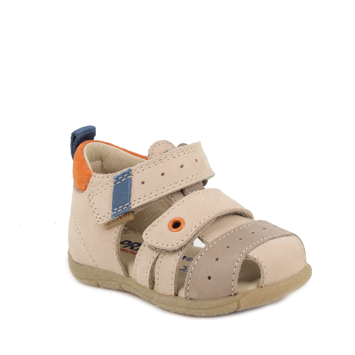 - První dobrodružství vašeho dítěte si zaslouží sandály, které mu umožní bezpečně udělat první krůčky. Vyberte si tento model s uzavřenou špičkou, která chrání prsty před náhodnými nárazy, a zesílenou patou, která udrží nohu ve správné poloze. Tyto odolné, vysoce funkční kožené boty mají stélku z paměťové pěny, která jemně tlumí nárazy při chůzi. Podrážka je měkká a protiskluzová.