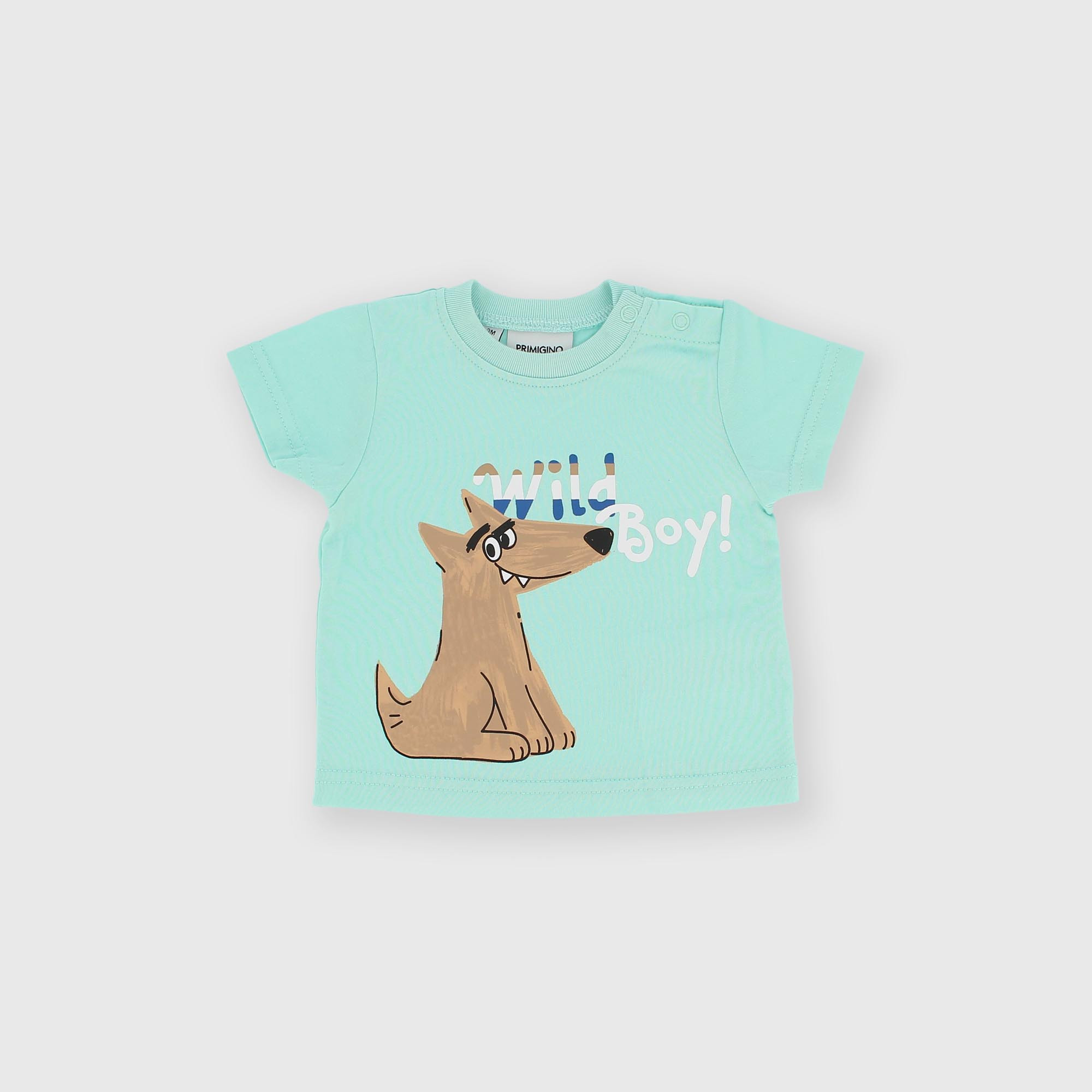 - Žerzejové tričko s kulatým výstřihem a krátkým rukávem. Zapínání na patentky na rameni. Potisk na přední straně.