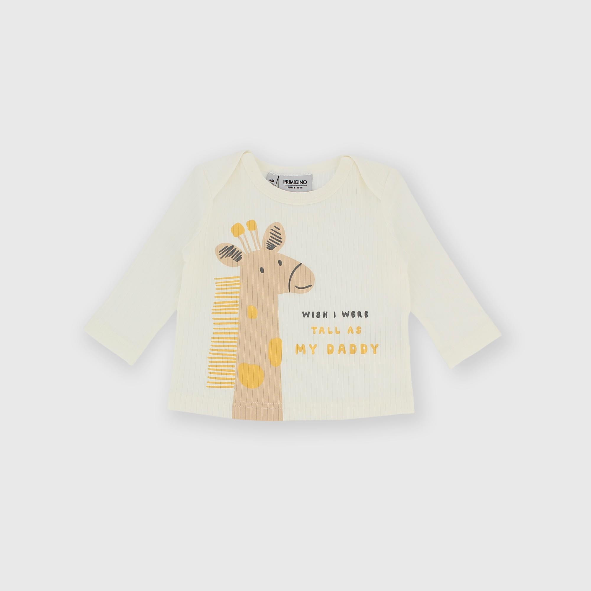 - Žebrované tričko s kulatým výstřihem a dlouhým rukávem s potiskem žirafy na přední straně.