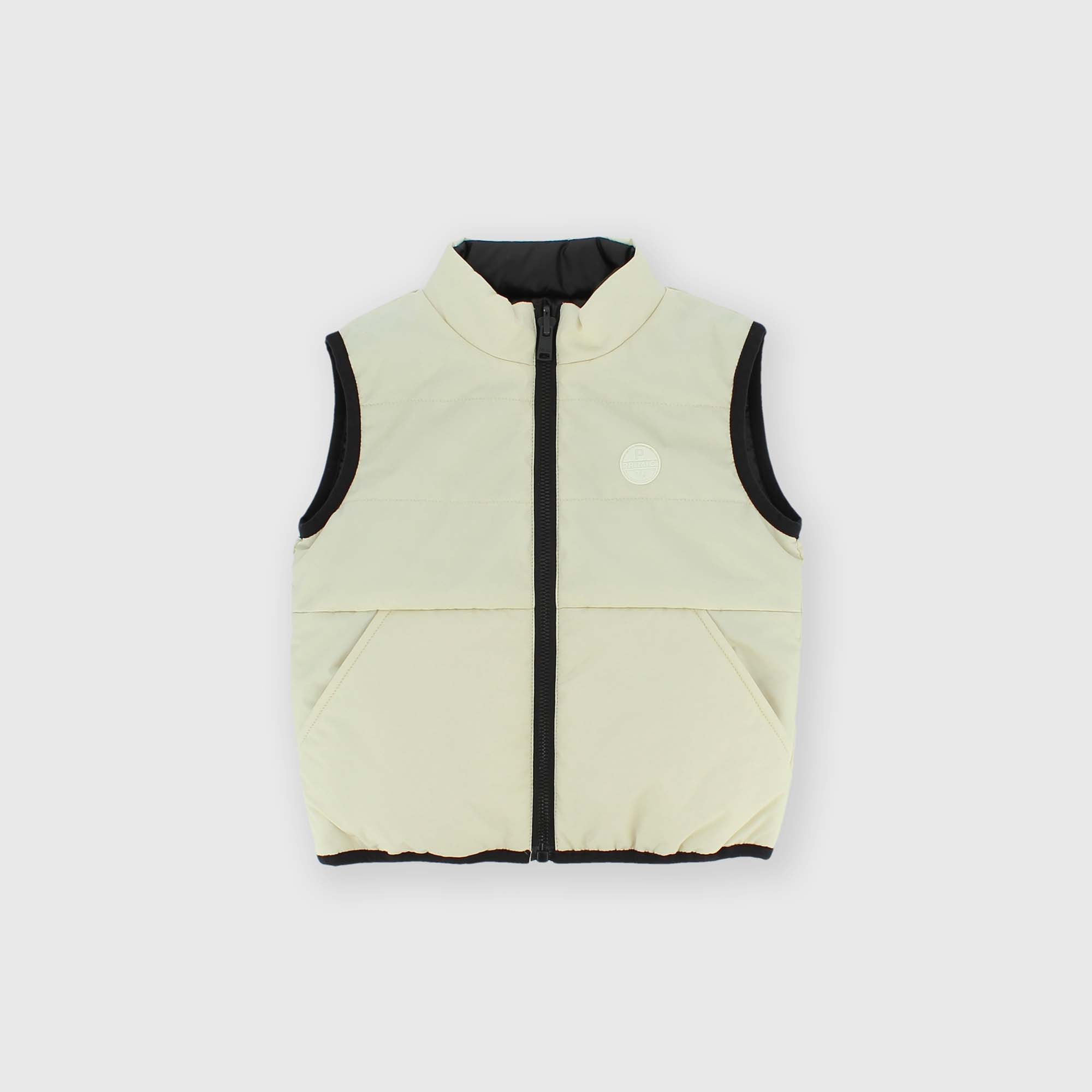 - Oboustranná nylonová vesta s vysokým límcem. Kontrastní zapínání na zip. Kapsy a nášivka s logem na přední straně.