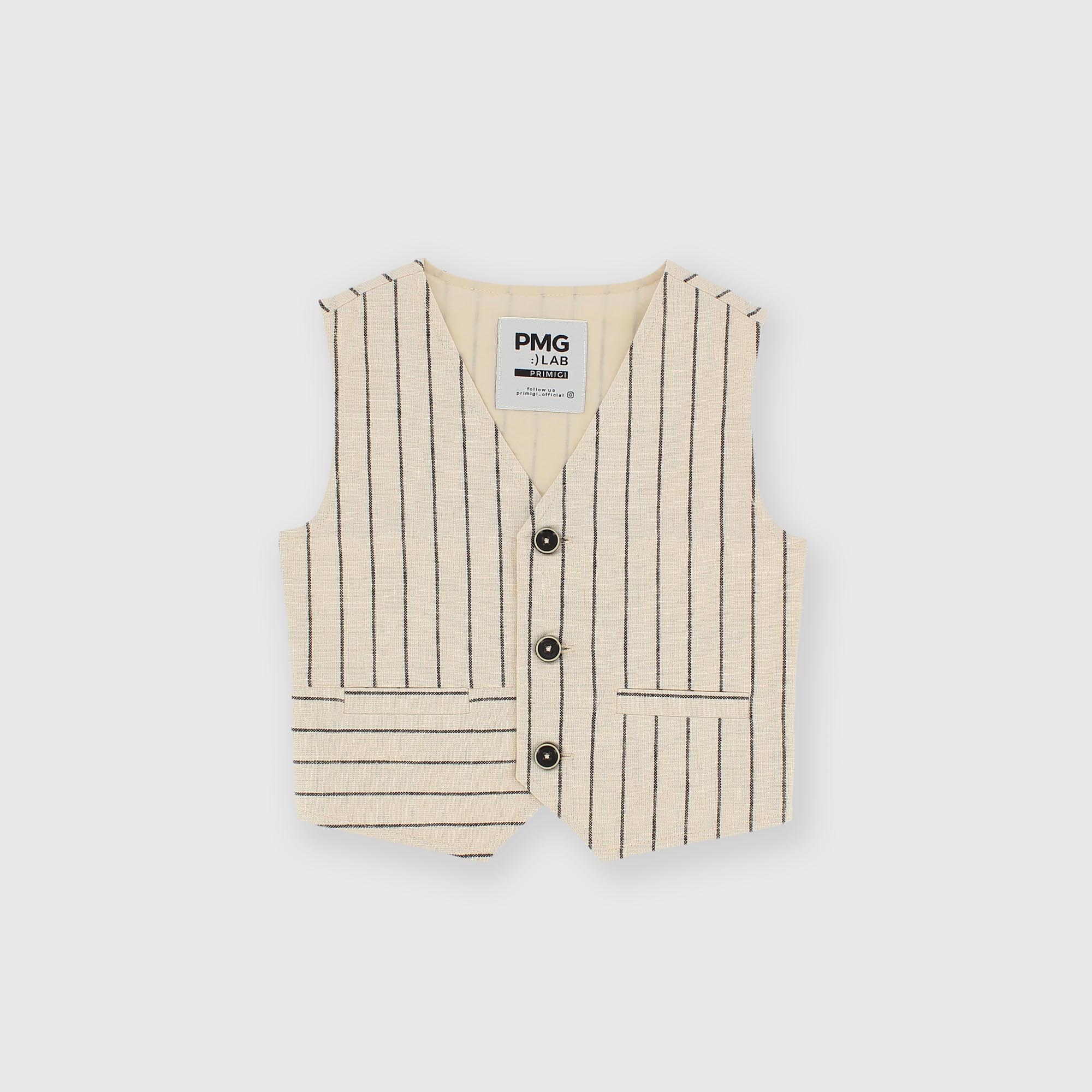 - Vesta ze směsi lnu s proužky barvenými přízí a knoflíky vpředu. Lemované kapsy. Elastický zadní díl.